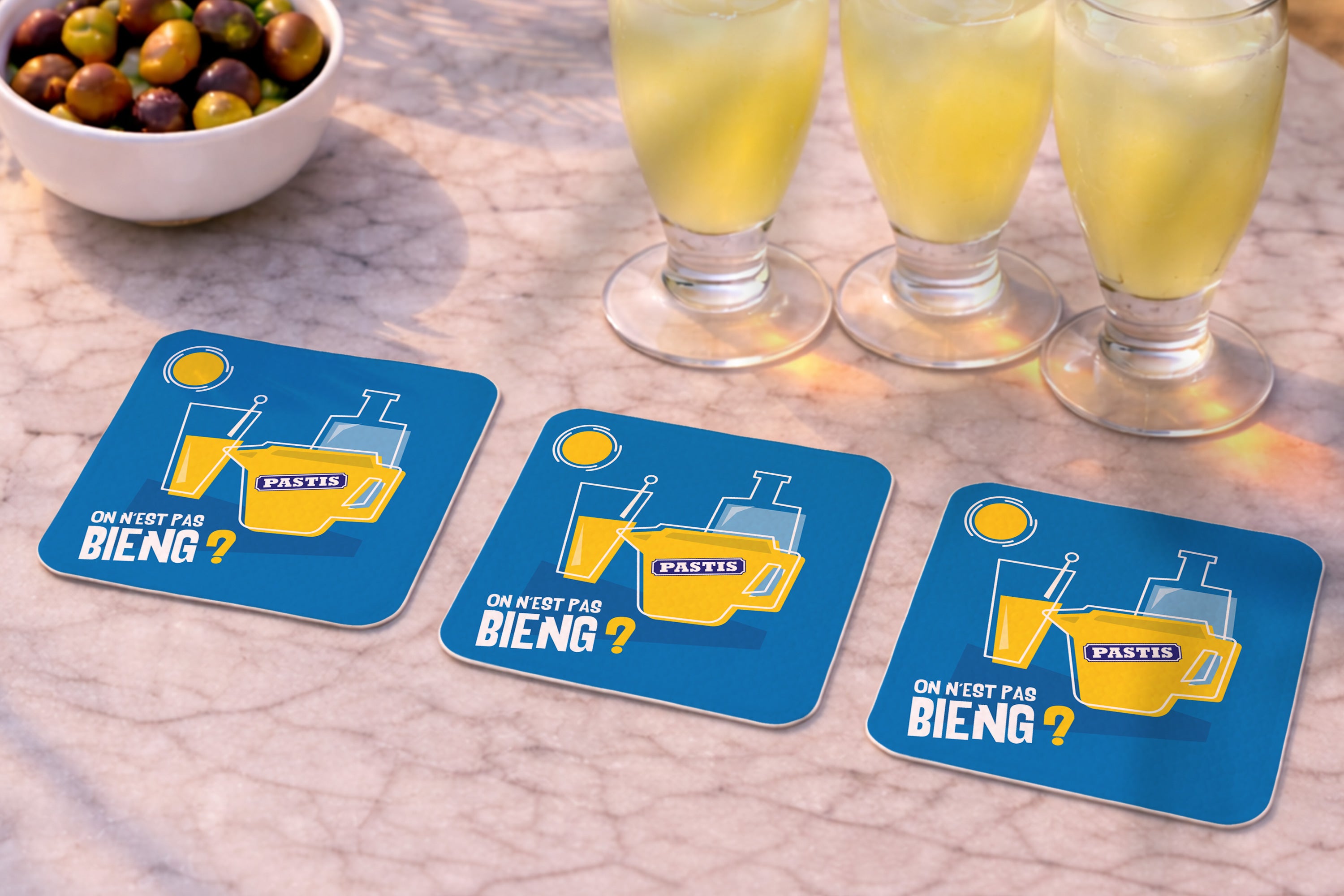 Le café du commerce, le bistrot du port, le bar de la plage,... Les voilà les vrais réseaux sociaux ! Installez-vous, profitez et partagez... Alors, qu'est-ce qu'on vous sert avec nos chouettes dessous-de-verre ?