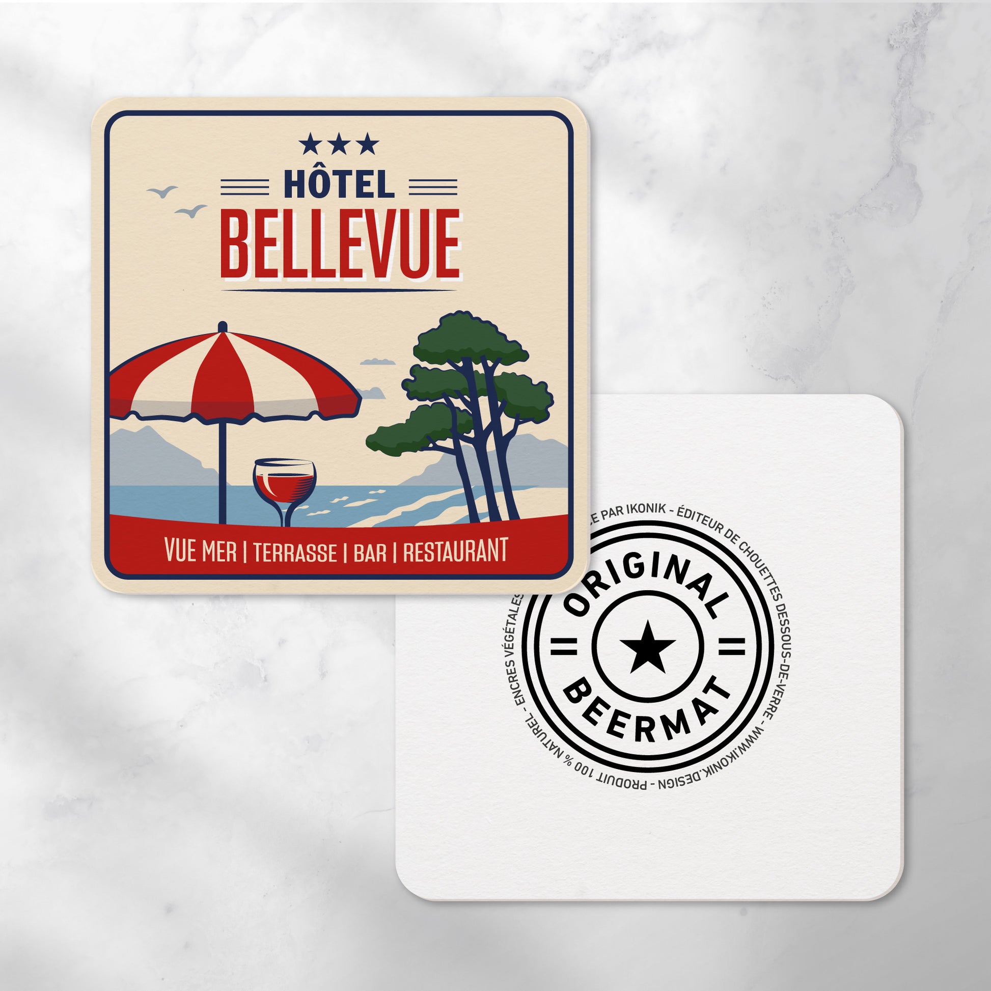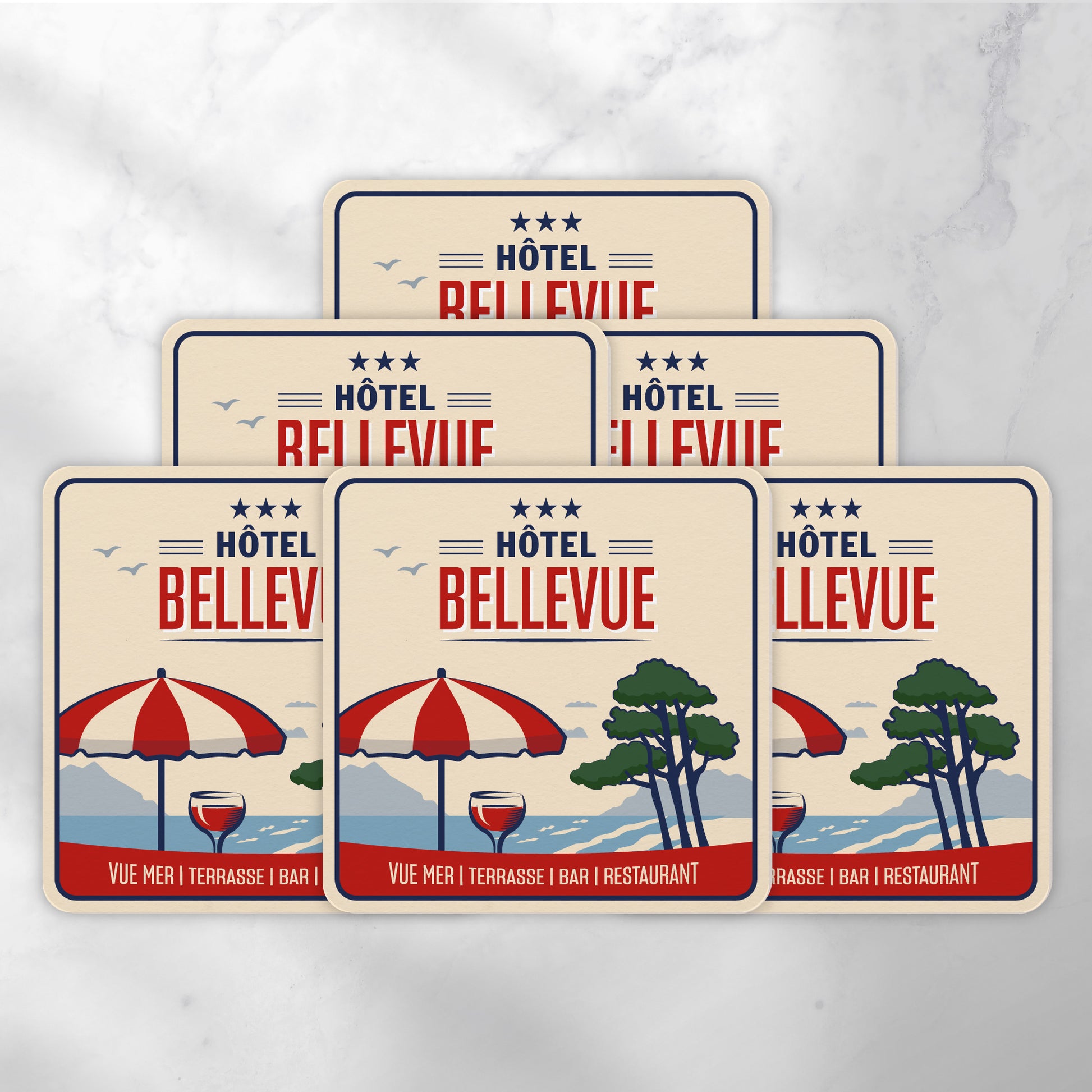 Contenu du pack : 6 dessous-de-verre ikonik « Hôtel Bellevue ».