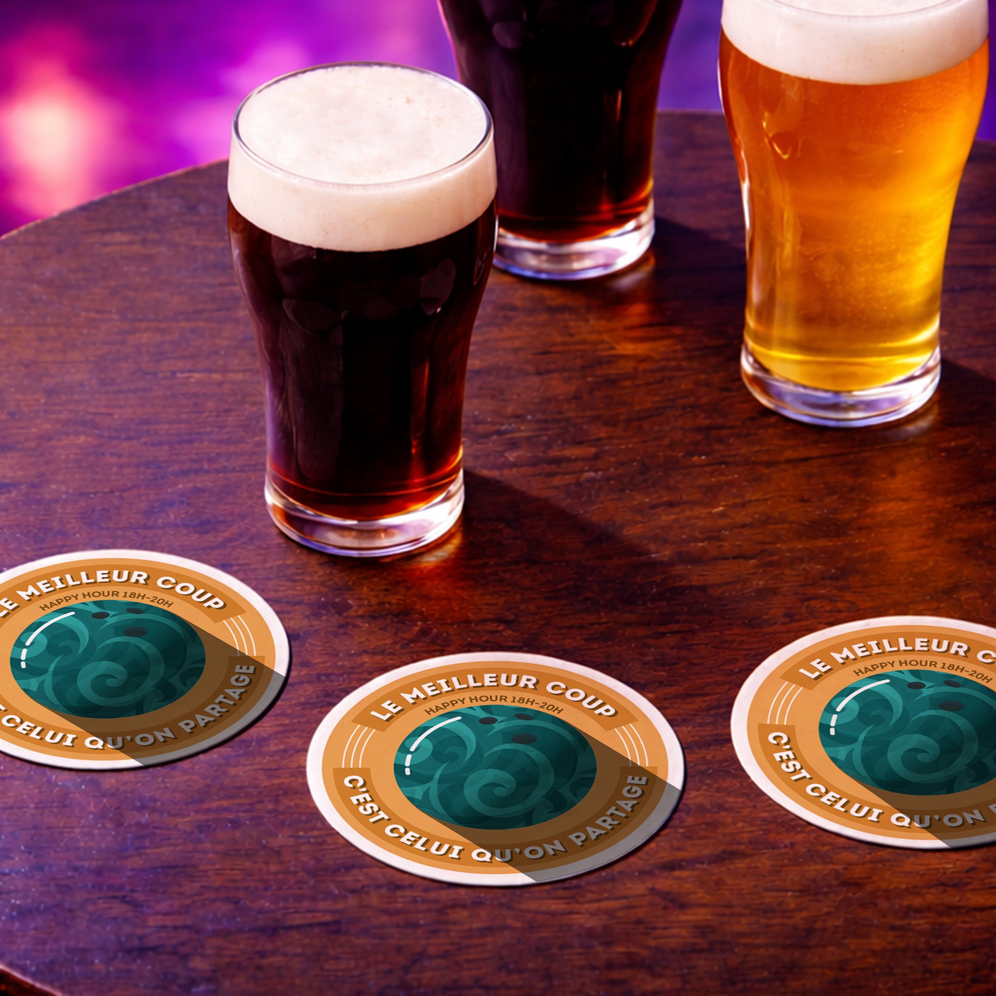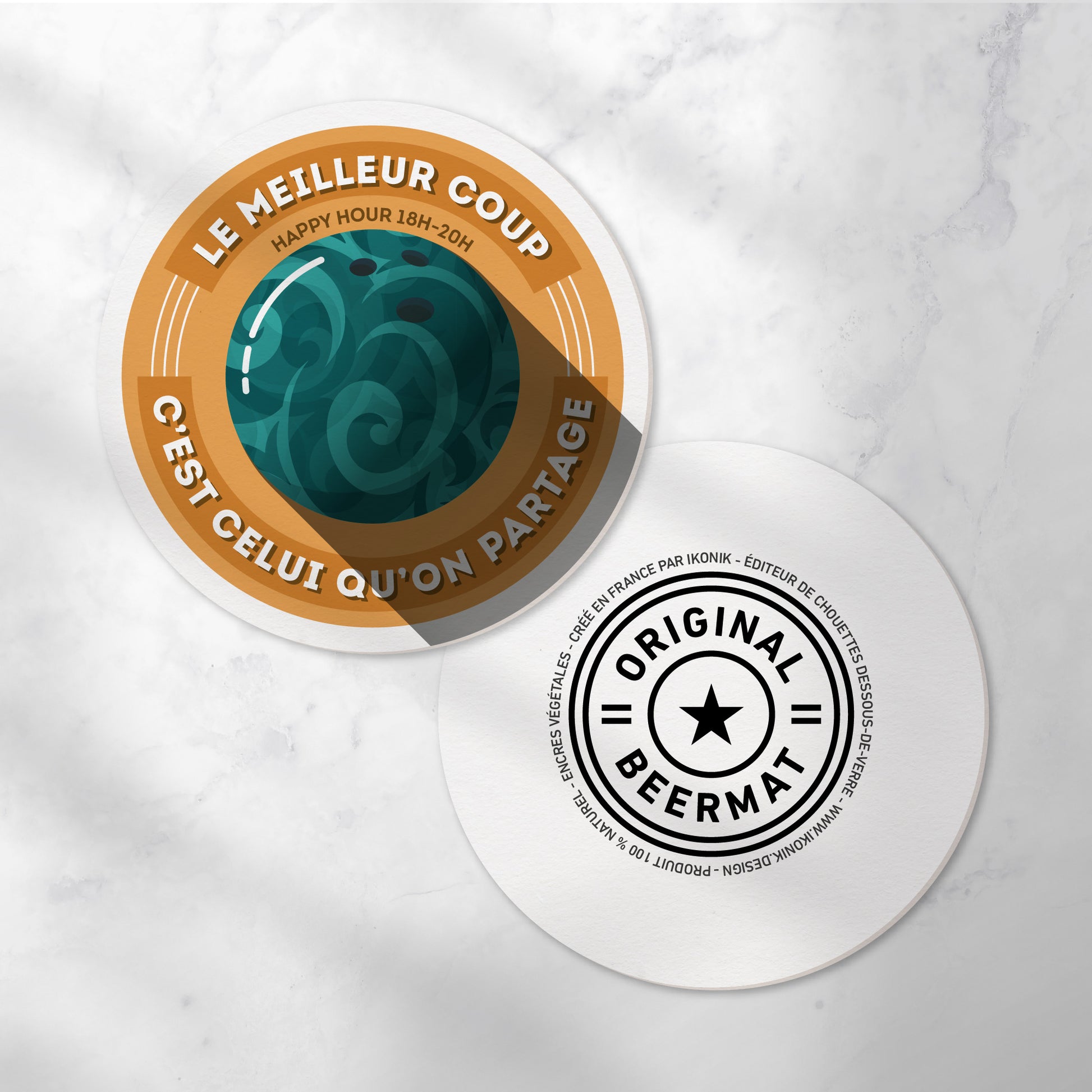 Contenu du pack : 6 dessous-de-verre ikonik «Bowling ».